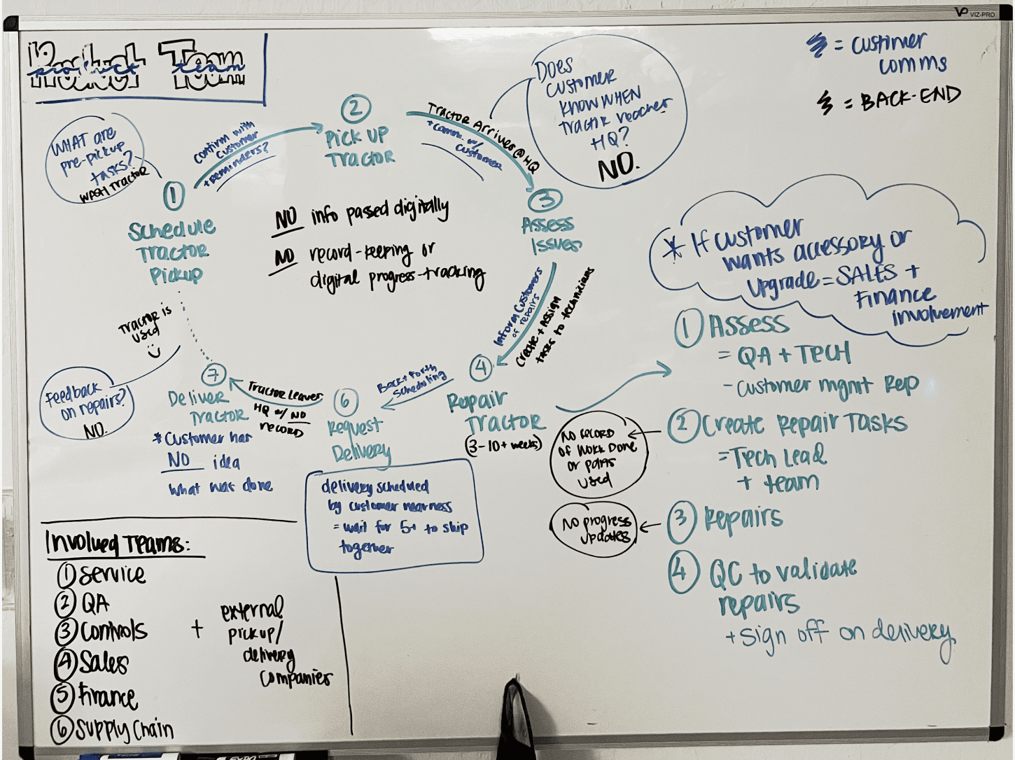 For an electric, autonomous tractor to provide value to our end-users, it has to work. We promise a seamless, transparent repair service at no cost to our users to help smooth over the inconvenience, and frankly, lost revenue, that an unavailable tractor causes. However, our current process felt like a "black box," stripping our users of their sense of ownership and leaving them confused, frustrated, and distrustful.
