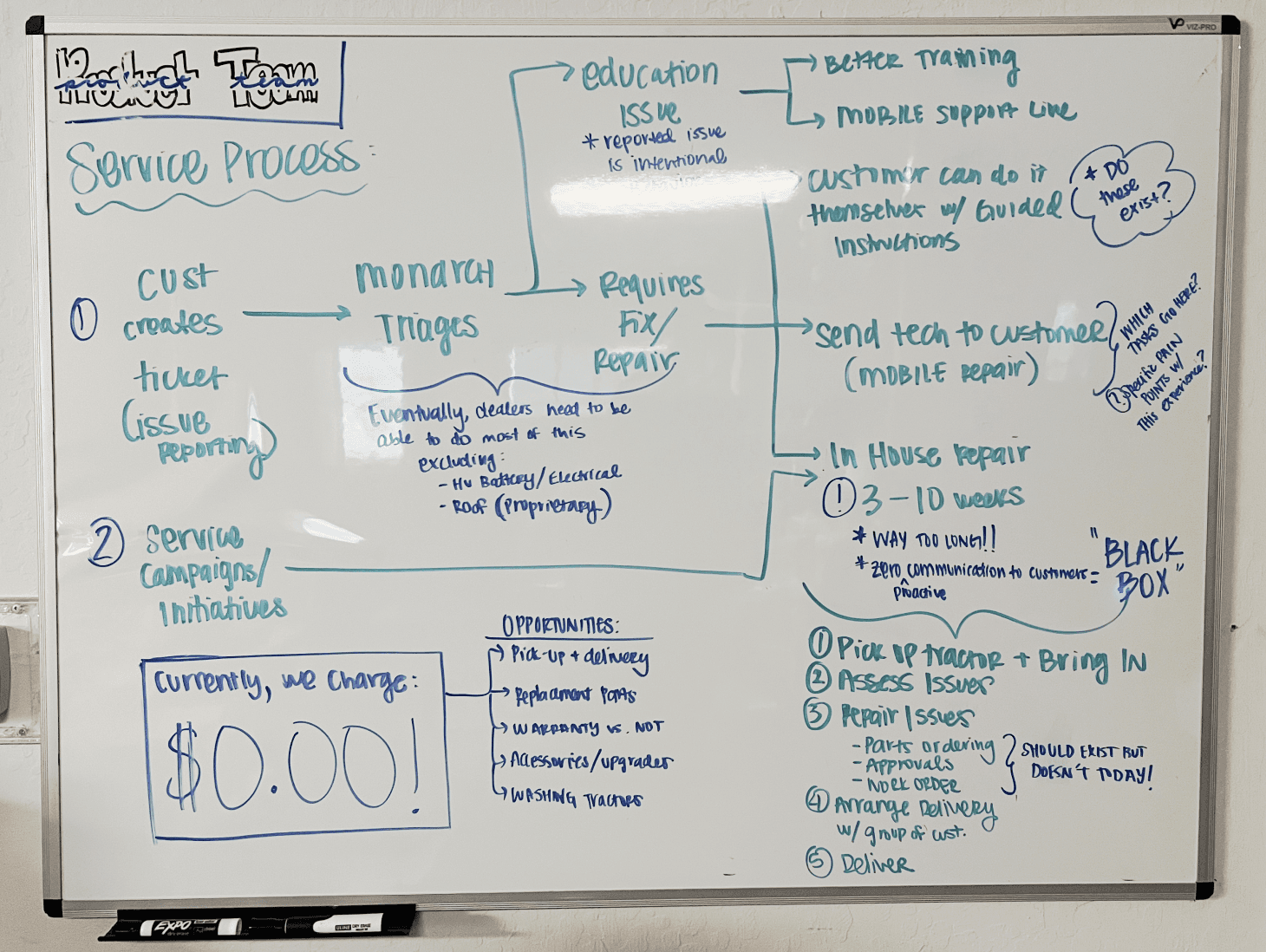 We believe that streamlining the Service Process into a digital progression will increase the efficiency of our Service Team by centralizing and automating communication with end-users, enabling better management of all tractors in house, and providing a trackable service record across the entire Monarch Fleet.